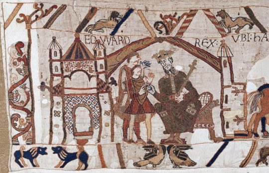 First definitely recorded in Bayeux in 1476, the tapestry was rediscovered in a chest in Bayeux Cathedral in 1729. It served as a cover for military wagons during the French Revolution. Rescued from that fate, it was sent to Paris after the Revolution before returning to Bayeux. It narrowly escaped being taken to Berlin during the Nazi Occupation of France. Like a comet it has a long trail behind it.